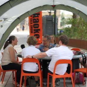 WeworkcloselywithThePeopleSpeakandhave foundtheirTalkaoketobeabrilliantwayofengaging peopleateventsandfestivals,bringingpeople togethertochataboutthetopicsthatmatterto them,andinformingresearchandevaluationactivity.