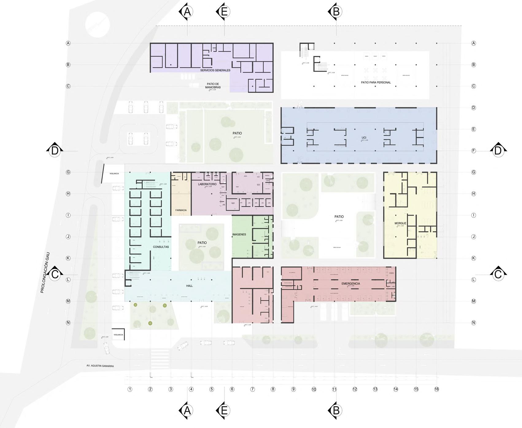 El proyecto está rodeado en su mayoría por edificios residenciales. El terreno posee una topografía accidentada hacia el mar.