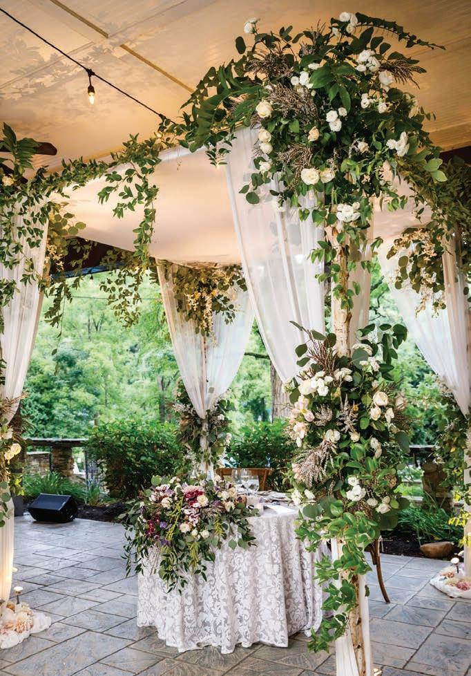 “A good fl orist is able to explain exactly what they are going to do and what it is going to look like with words,” Norvet says, in addition to “being able to off er you creative solutions ... whether you have limitations based on the venue or budget or preference. A good fl orist works in those perimeters.”