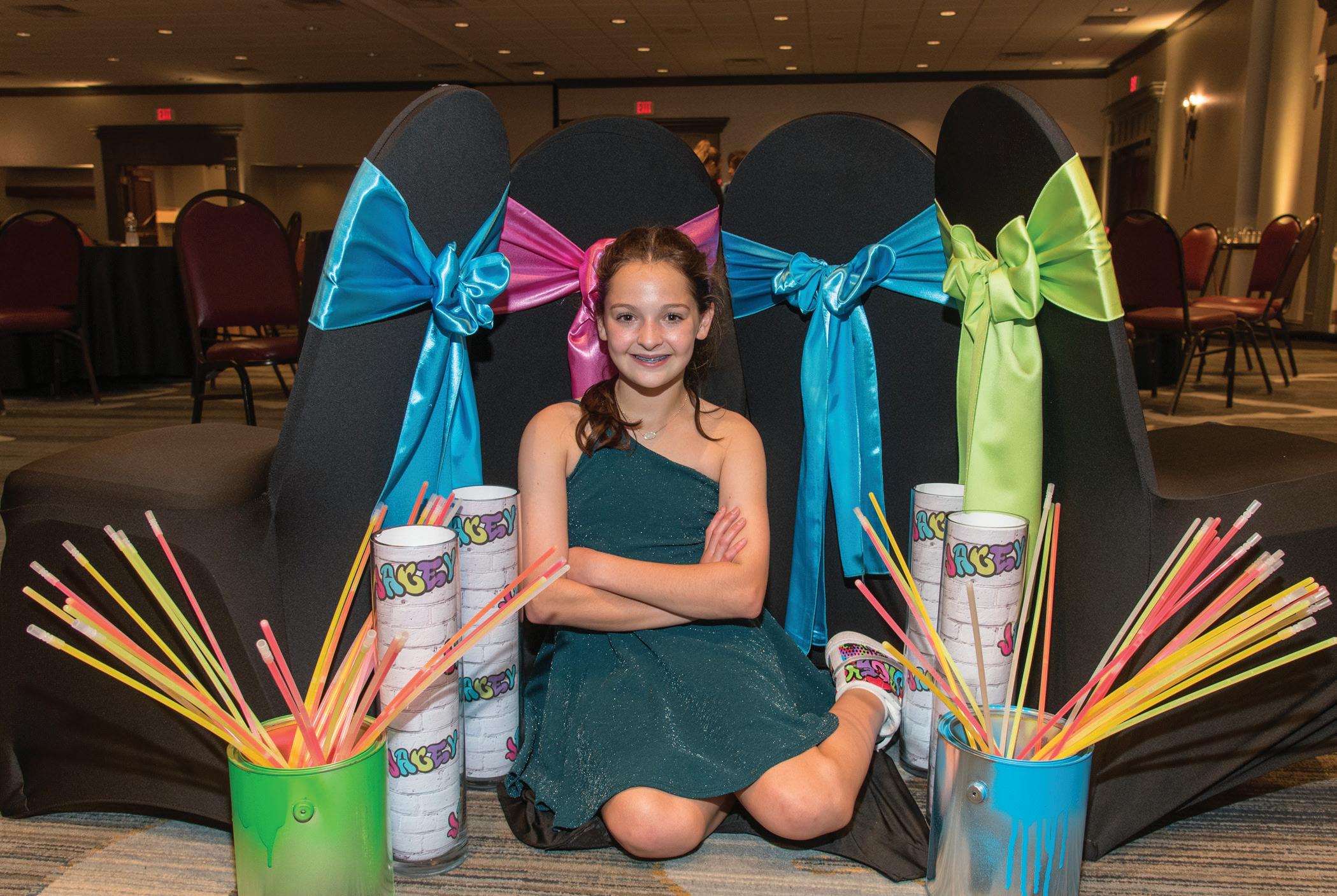Jacey Simms celebrates – featuring glow sticks – at her bat mitzvah party on Oct. 9, 2021, at the Cleveland Marriott East in Warrensville Heights.