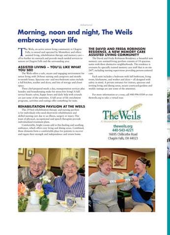 he Weils, an active senior living community in Chagrin Falls, is owned and operated by Montefiore and offers assisted living, rehabilitation therapy and memory care – all to further its outreach and provide much needed services to seniors in Chagrin Falls and the surrounding area.