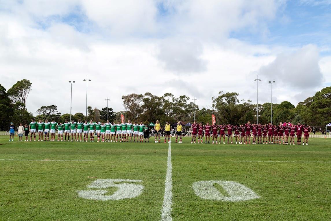 The Gymea and St. Joey’s teams pay respects to the late Terry Watters, a former contribututor at several clubs including Gymea, and life member of Sutherland-Loftus JRLFC.