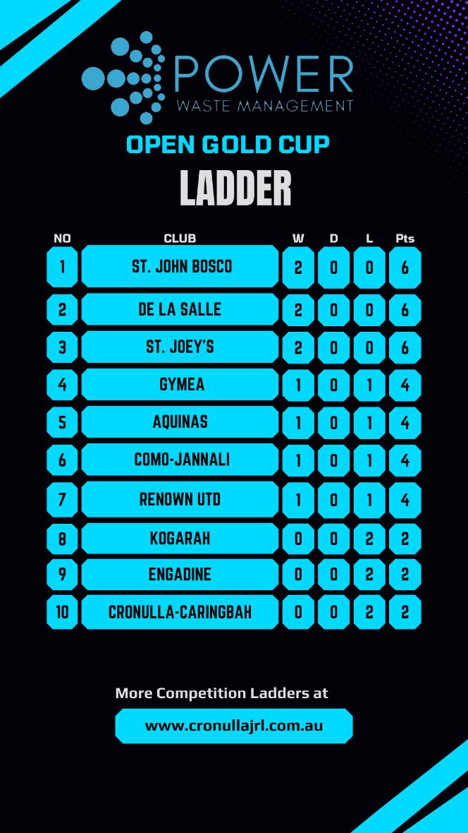 Competition Team 1 Team 2 Time PWM Gold Cup Kogarah V Cronulla-Caringbah (forfeit) NA PWM Silver Cup Kogarah V Kingsgrove 1.40pm