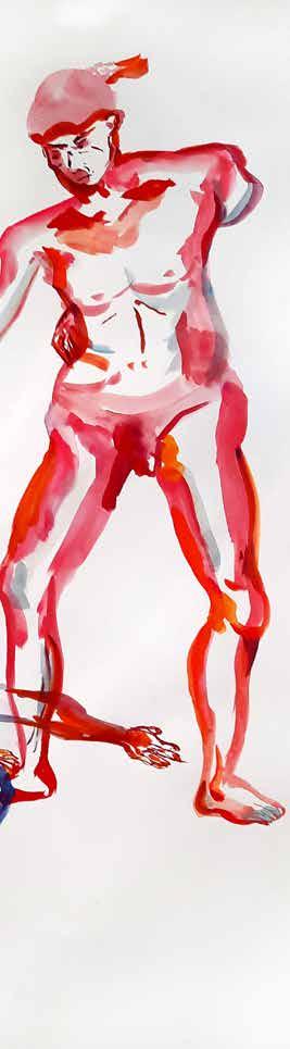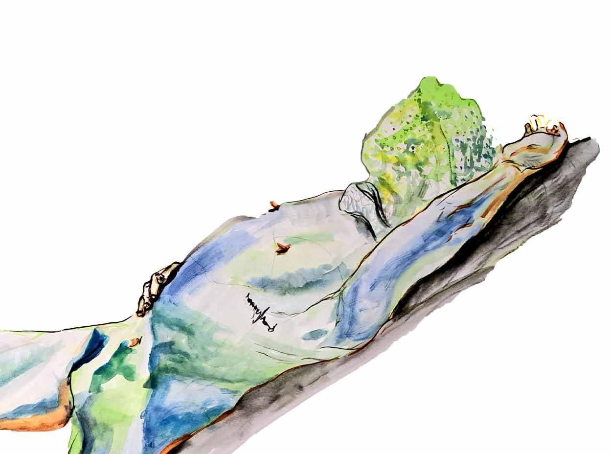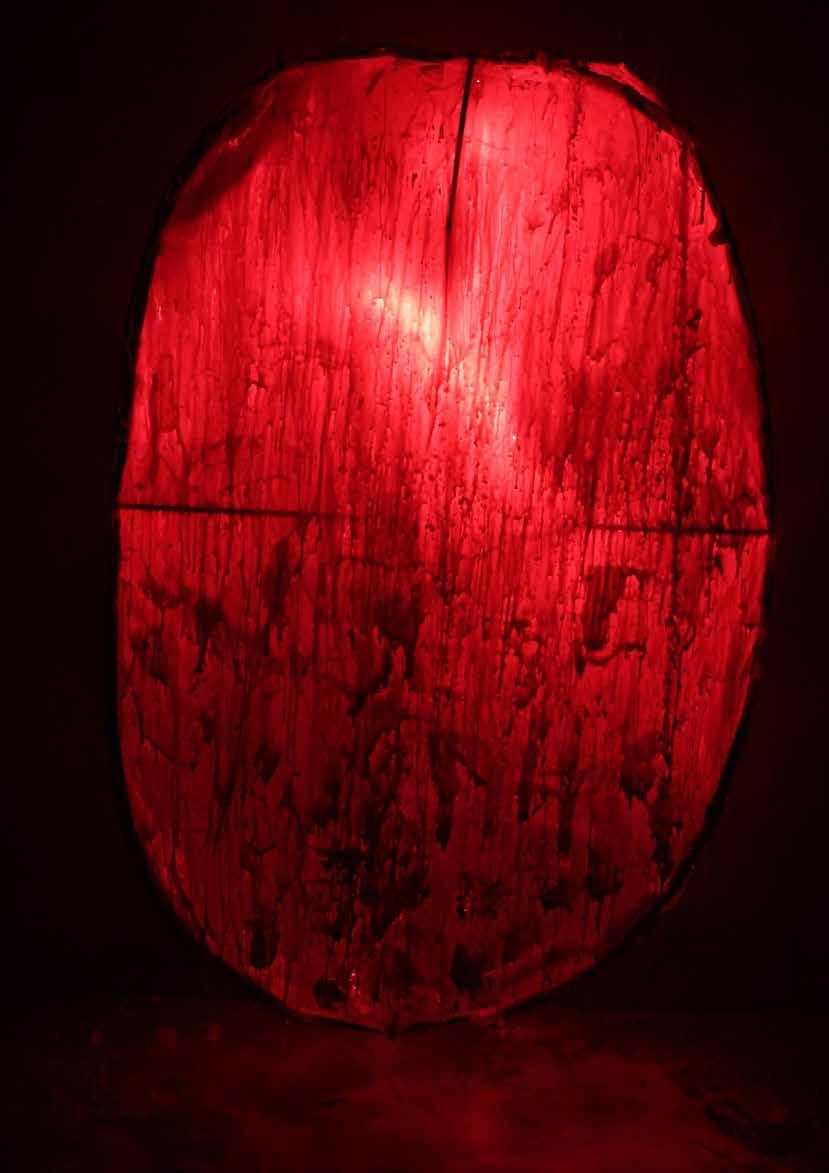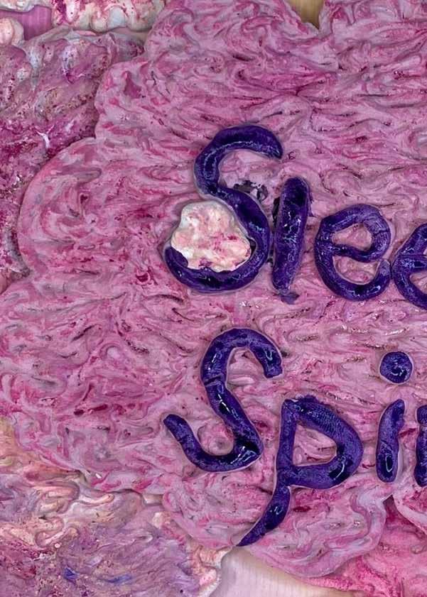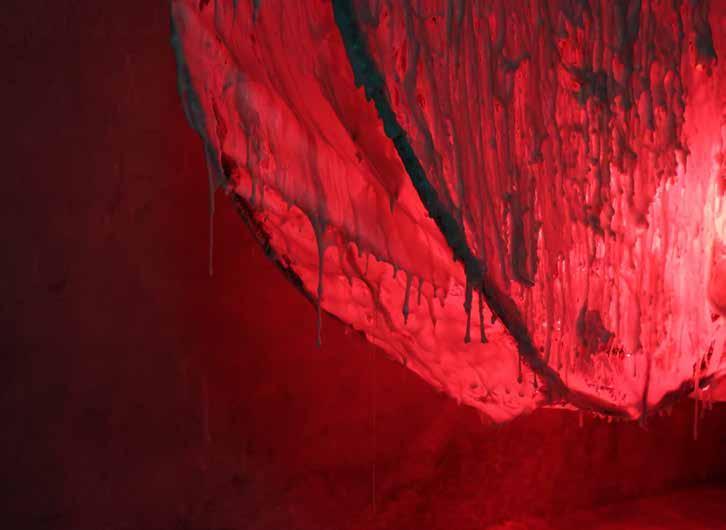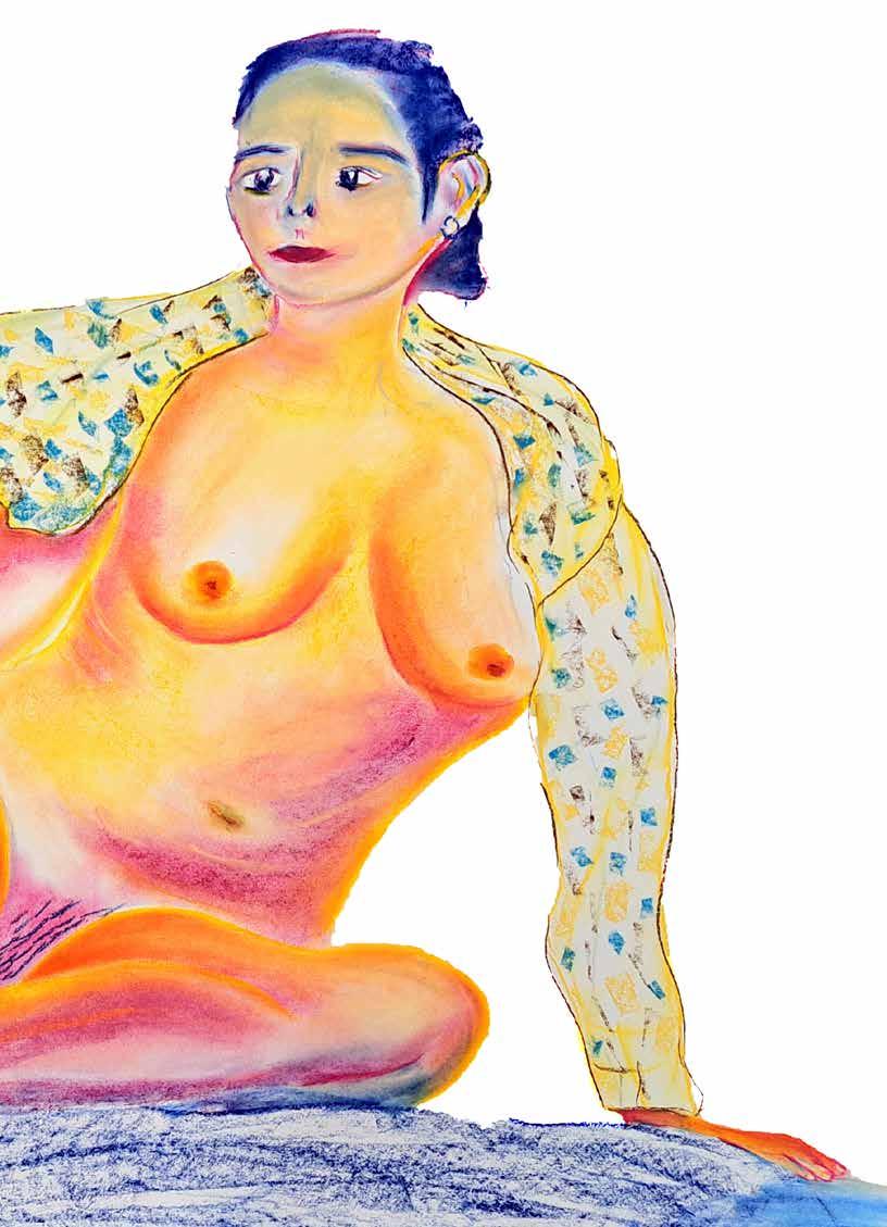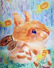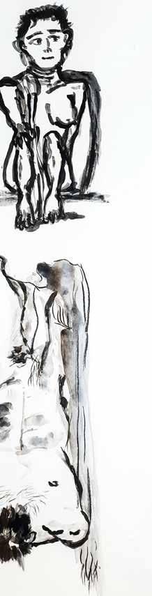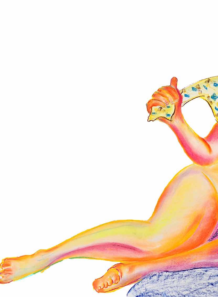 每一次下筆後就急忙想抹開,線條跟我的思緒一樣很不肯定,直到進入心流的狀態,不 再多想外界和自己的質疑,放心的畫、盡情的畫,趴在地上畫好幾個小時也不覺得累, 原來是心裡放鬆了。