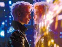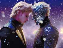 Two young men facing each other, left one wearing a mask right one didn't wearing a gray mask, yet their eyes are filled with emptiness and a sense of distance, look each other, glowing eyes, detail eyes , Golden hair, Black suit, extravagant ,sci-fi style , castle background, cyberpunk style ,high detail background, star, glitter particles, Octane render, photoreal, semi-mechanized, Waist Shot, dramatic angle, lens flare, high detail �k--v � --q � --ar �:�