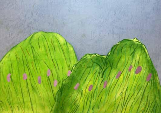 這張是在時間最緊迫之下畫的,過程內心卻很平靜,我開始想起往事,想起刻意避開的 感受,從大的事件到小事,慢慢思考,畫完一顆石頭就