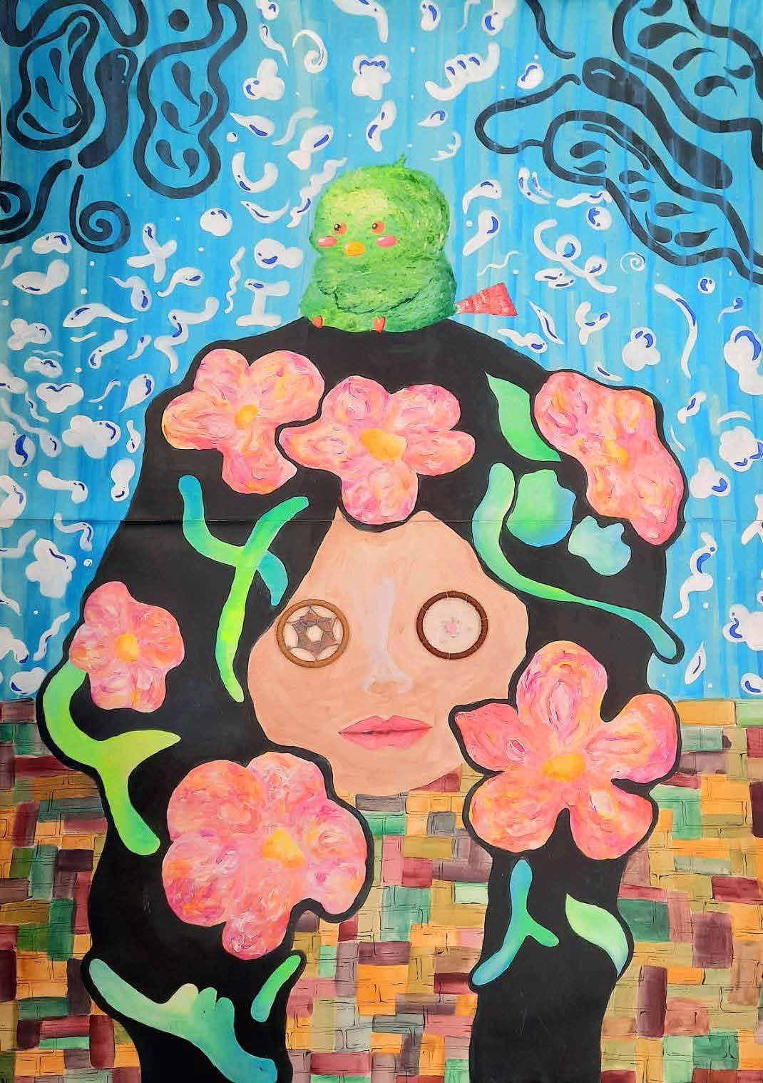 白素描紙、廣告顏料、毛線、造型珠 155×104CM