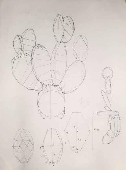 利用分析植物外型去發想作品 仙人掌會因為陽光的強弱呈現出不一樣的綠,每天看都不一樣, 一個一個記錄下來。