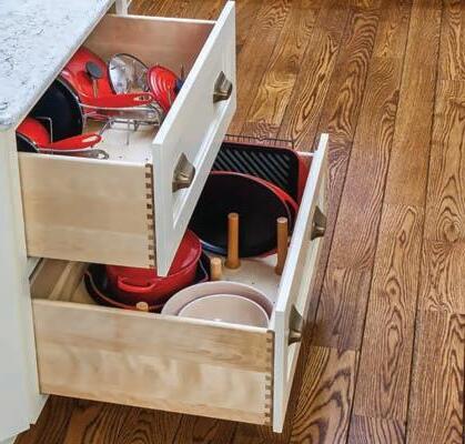 Deep drawers easily store pots and pans. With peg board, you can configure the drawer to securely fit the cookware, food storage containers or any object so they won’t shift when you open or close the drawer.