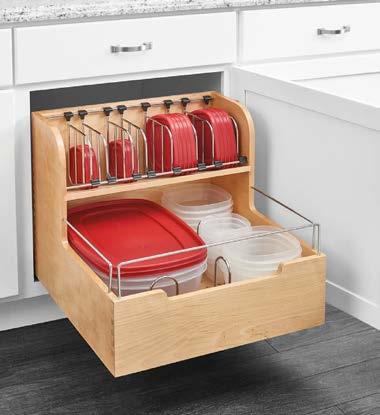 Deep drawers are fantastic for storing pots and pans. With peg board, you can configure the drawer to securely fit the cookware, food storage containers or any object so they won’t shift when you open or close the drawer.