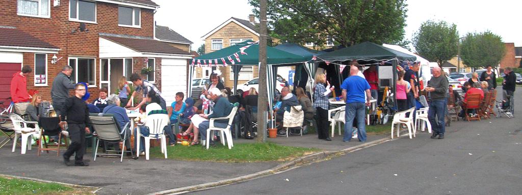With your neighbours pick a practical and safe area in the street to have a get-together: on a driveway, parking area, or front garden as it is on private land or at the end of a cul-de-sac, wide pavement or grass verge.