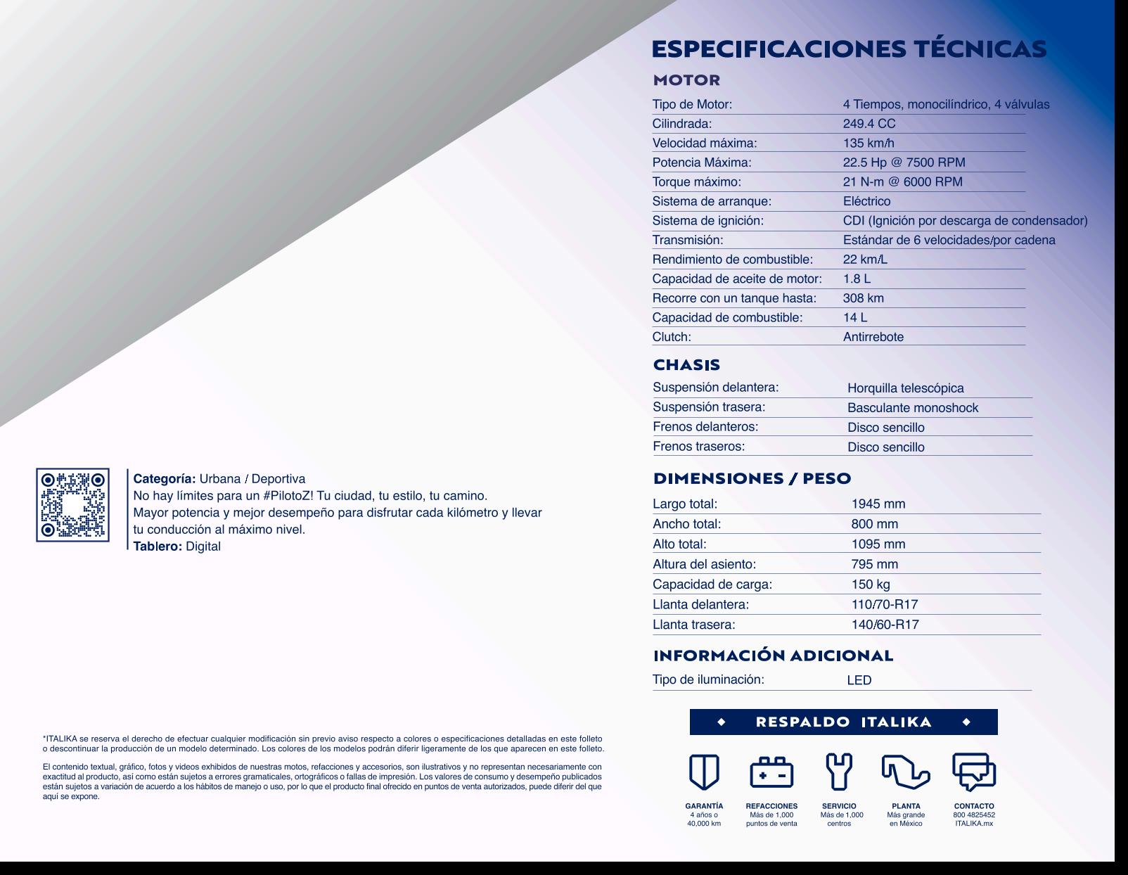 14L Telescópica Monoshocknitrox 100/80-17,52P,sincámara 130/70-17,62Psincámara Frenode300mmconABS Frenode230mmconABS