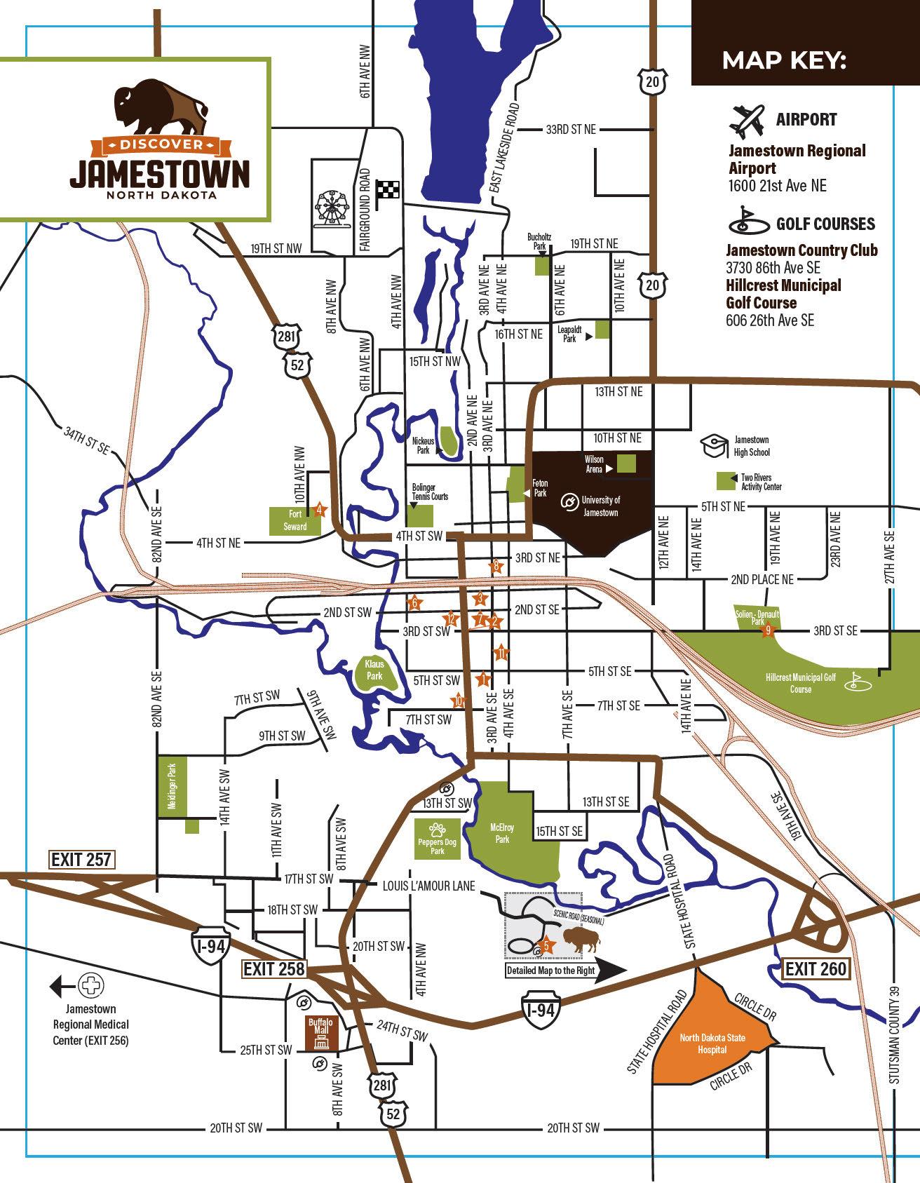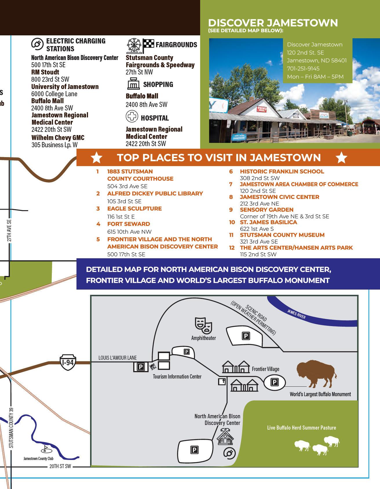 Inside, you will find local attractions like the World’s Largest Buffalo, Frontier Village, the North American Bison Discovery Center, historic sites, museums, and arts destinations. The guide also highlights outdoor recreation including hiking and biking trails, parks, kayaking, golf, disc golf, and family friendly activities across the community.