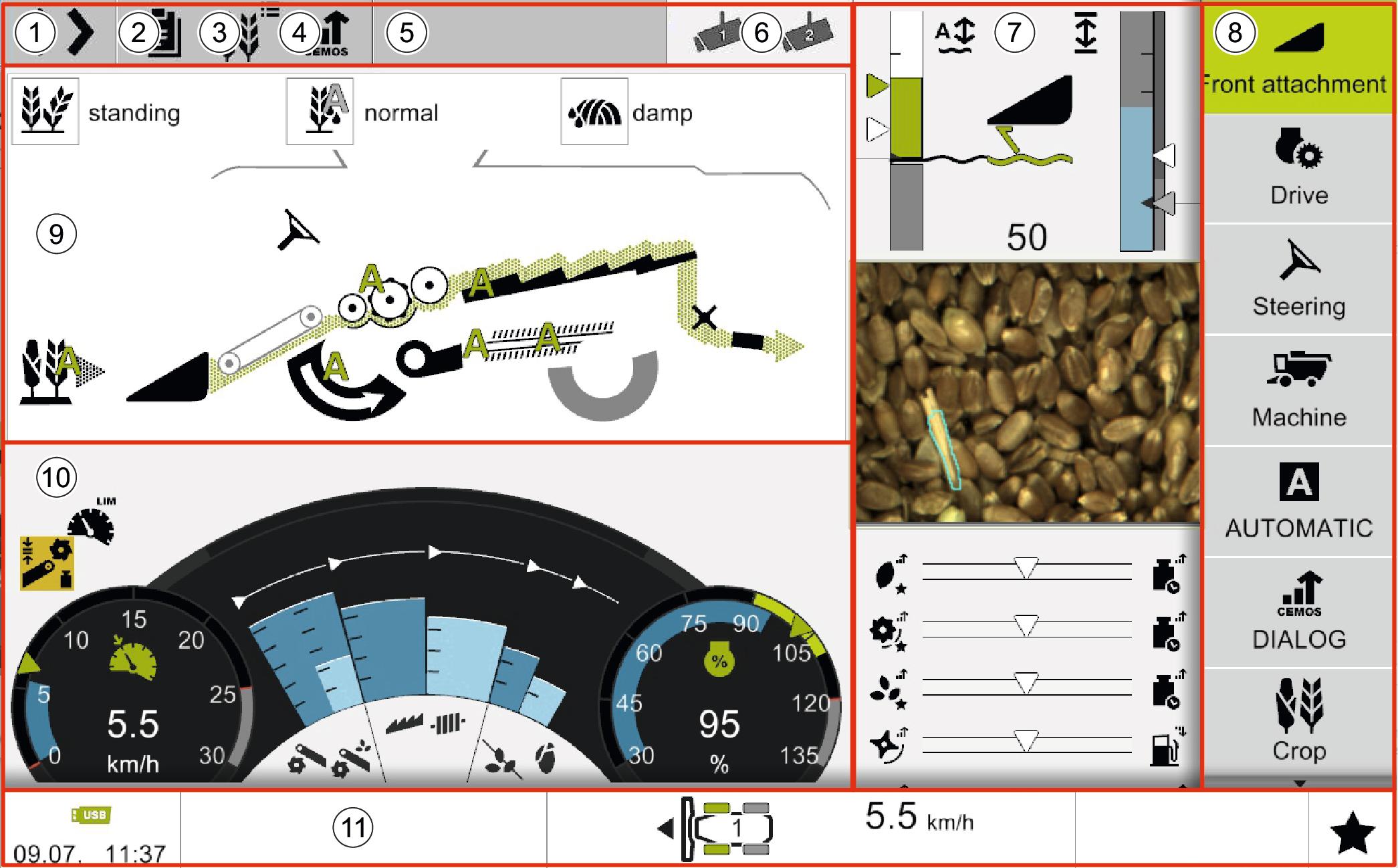 To obtain initial settings, it is recommended that the ‘CLAAS settings’ are loaded through CEBIS. The operator can use these settings as a starting point so adjustments can be made.