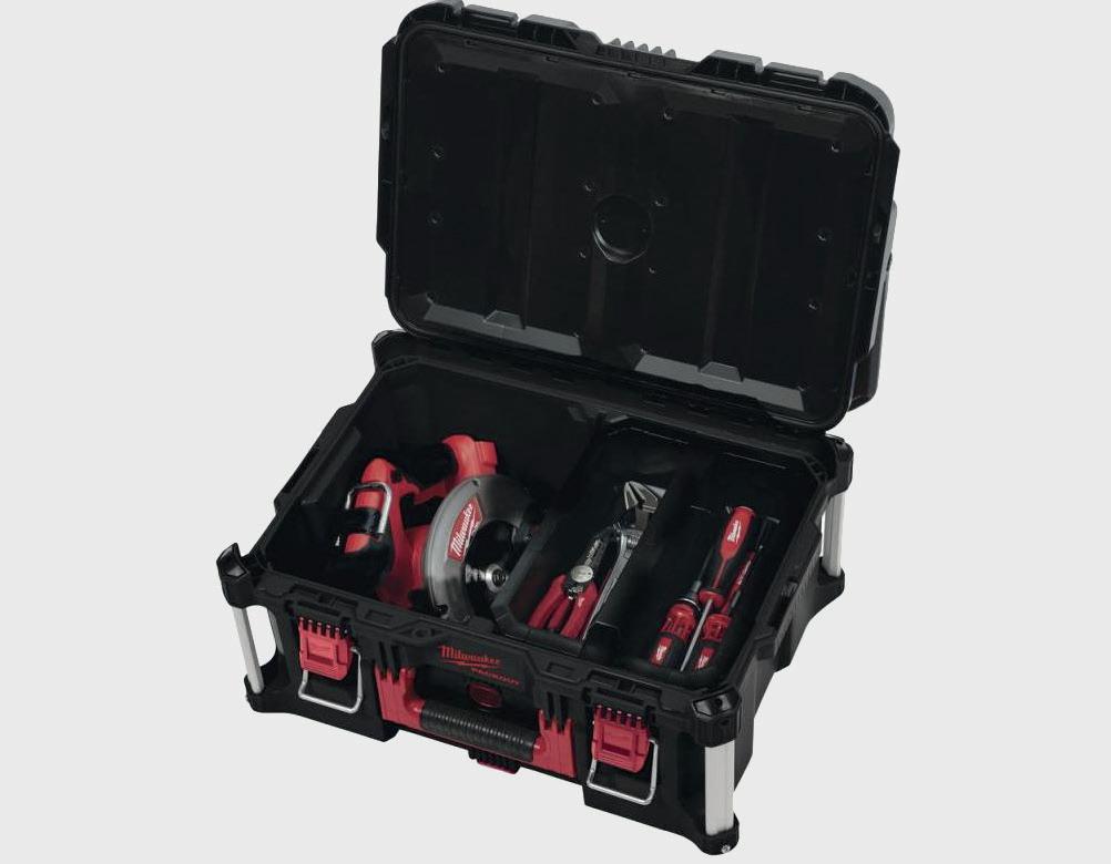 Milwaukee Packout vindt de manier van opslaan, transporteren en organiseren van materiaal op locatie opnieuw uit. Dit unieke modulaire opbergsysteem maakt het eenvoudig om gereedschapskisten, kratten, tassen en andere accessoires te monteren, stapelen en te vergrendelen. Om de ontberingen van de werf te weerstaan, zijn Packout units gemaakt van industriële materialen.