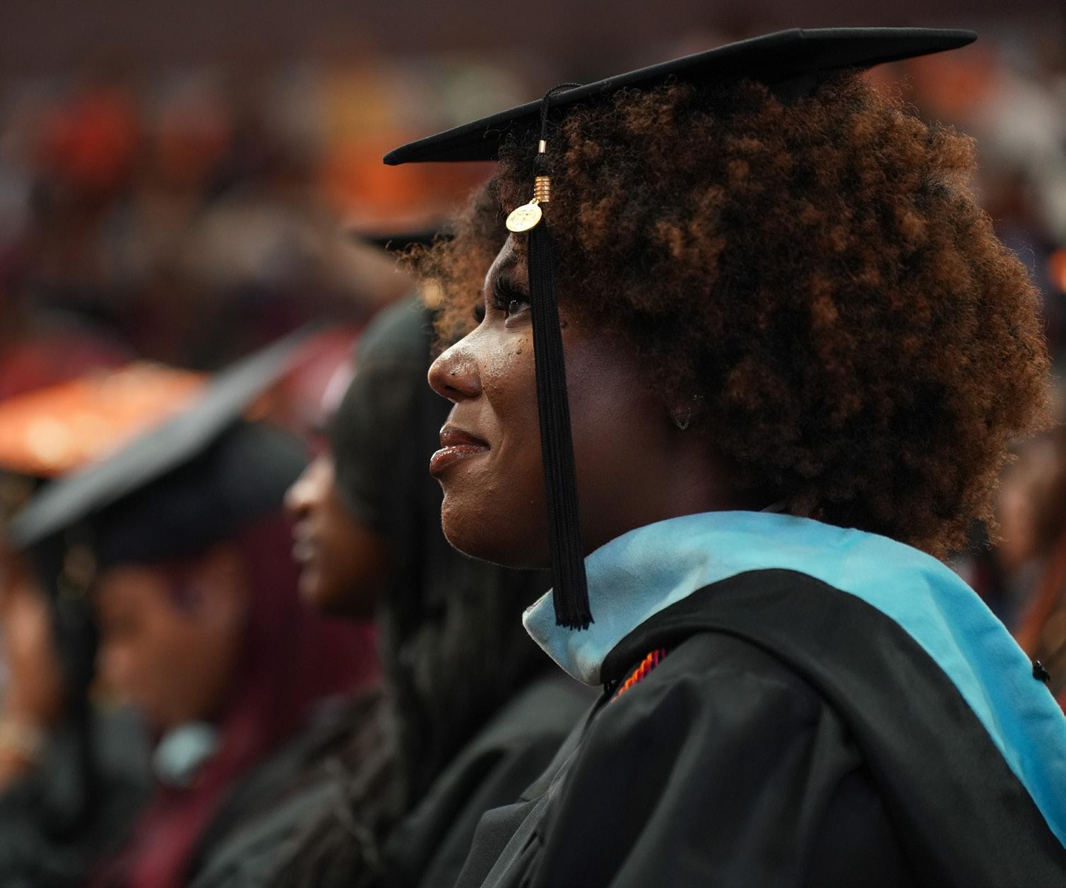has added a distinctively-colored hoodlining by which graduates may be recognized in academic processions. Symbolically, the width of the hood’s velvet trimmings designates the level of the degree, its color heralding the major field of learning, and its lining identifying the institution that granted the degree.