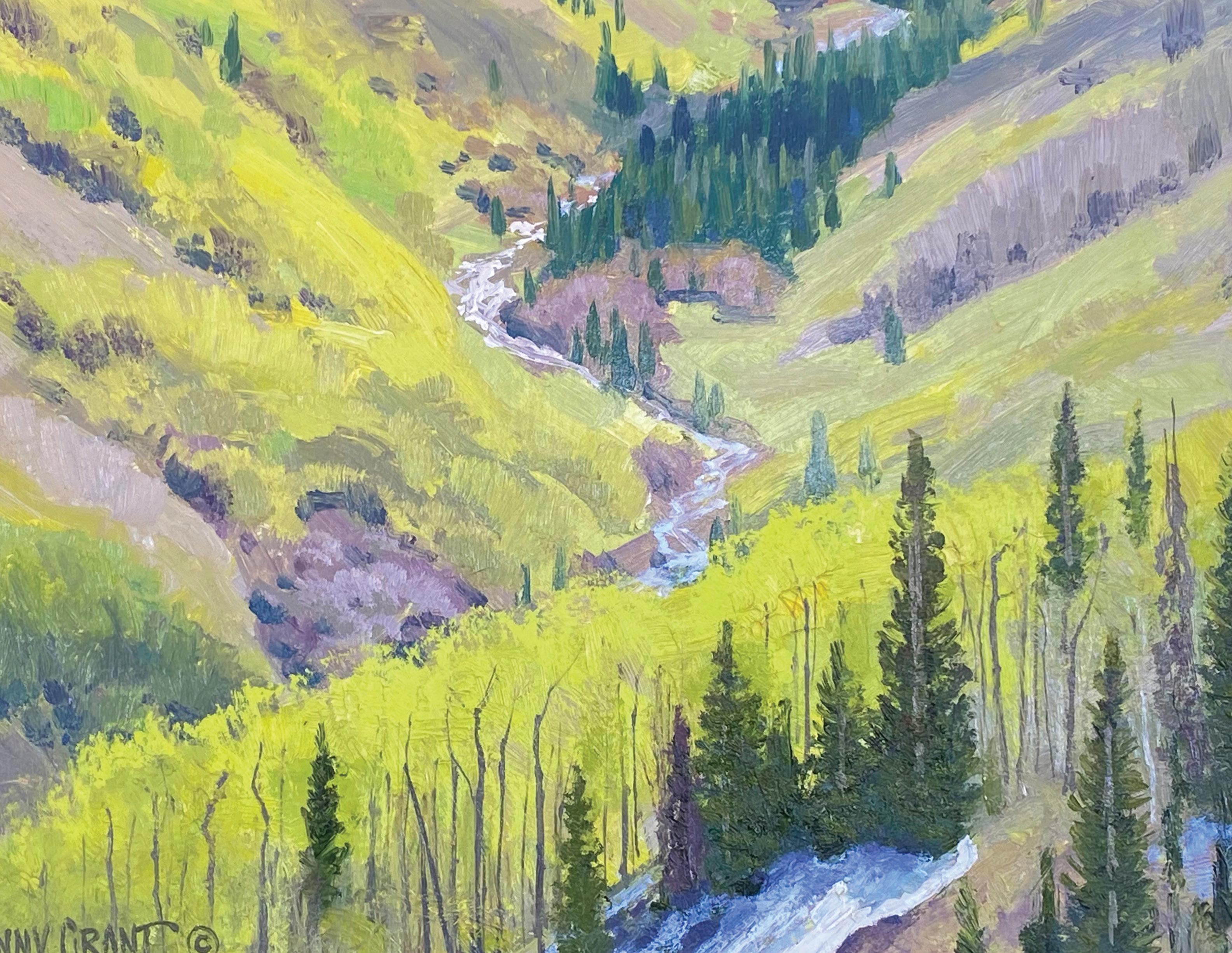 Raised on a ranch near Silt, this Colorado-native developed a deep relationship with the mountains. During family fishing trips, Lanny spent more time exploring the woods than trying to snag fish. Inspired by the vistas that make Lanny pause on a walk or drive, he is known to pull out a canvas and his paints to recreate the scene on the spot. Smaller works allow him to finish paintings on site, while his larger works are completed in his studio based on numbers of sketches and oil color studies. Lanny’s work sparks viewers’ imaginations by transporting them into remote regions they might not otherwise experience.