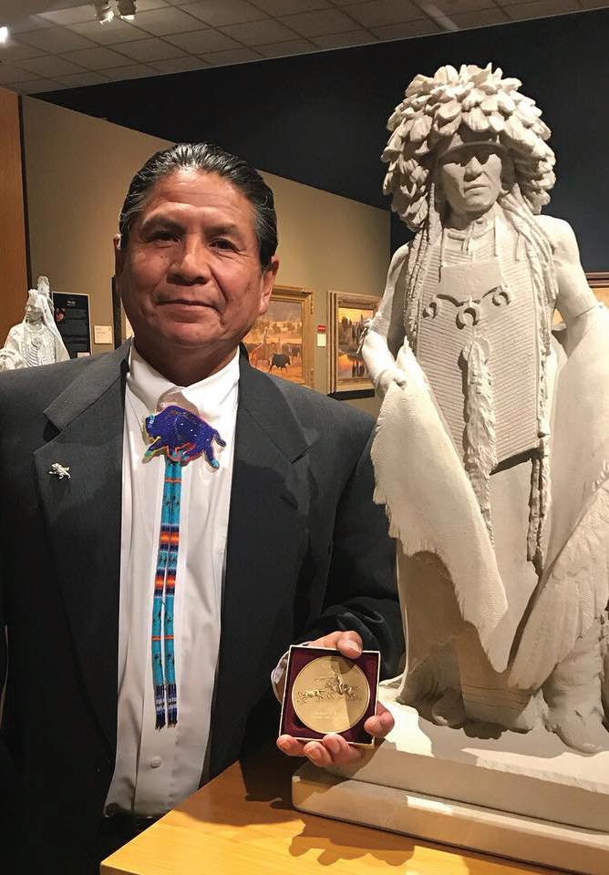 Over the years, Oreland has captured several medals for sculpture at the annual CAA exhibition, including both the Western Art Associates’ Kieckhefer Award (Best In Show) and the gold in sculpture for his Shawl Dancer in 2002, and a gold in sculpture for Healing Ways in 2003. In September 2000, Oreland received the New Mexico Governor’s Award for “Excellence in the Arts.” In June of 2002, the Lewis & Clark Bicentennial Committee of Fort Calhoun, Nebraska, commissioned Oreland to create five life-size figures and a dog, titled The First Council.