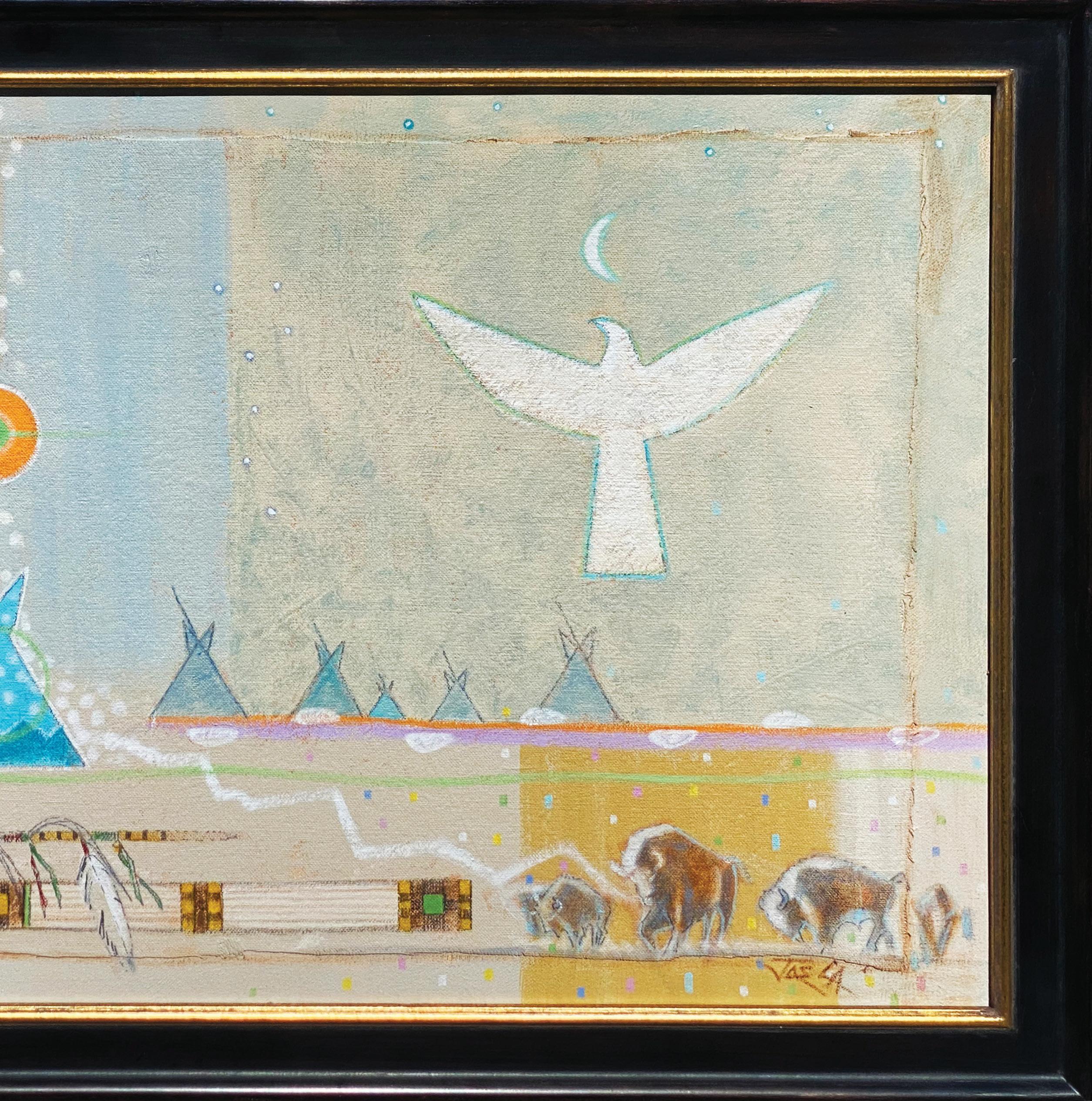 “I find strength, faith and dignity through my heritage-yet I also find these in other cultures-and I derive inspiration and motivation from them as well. In my humble opinion, I’m just and artist who happens to be Native American. I find myself in a unique place of receiving blessings from two worlds. My goal and desire is to have more Native American artists to be in this place.”