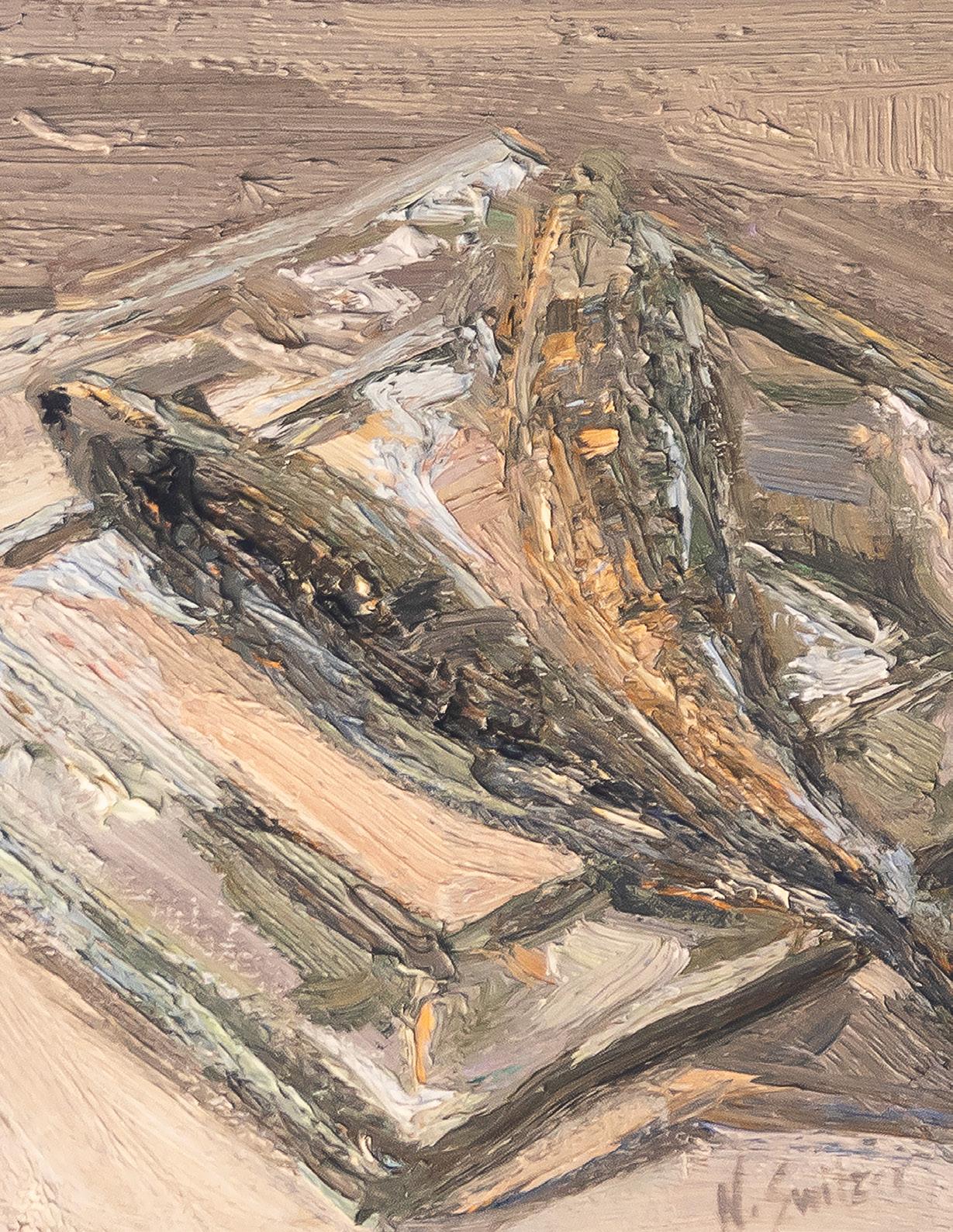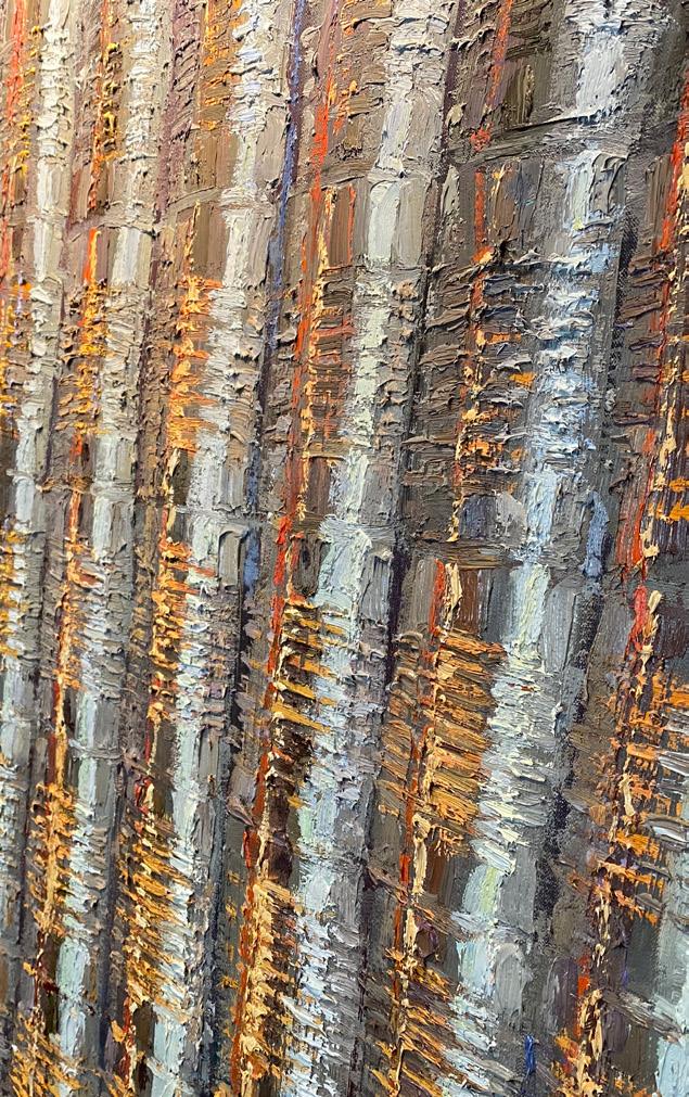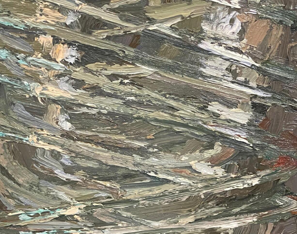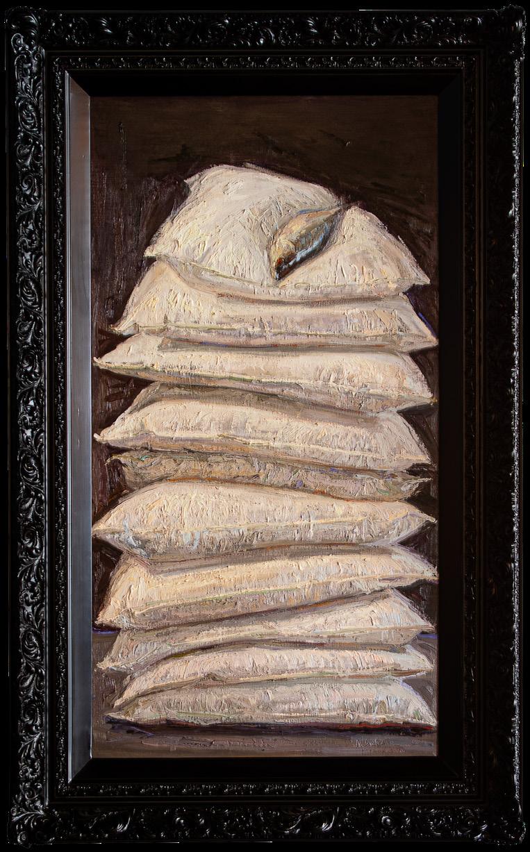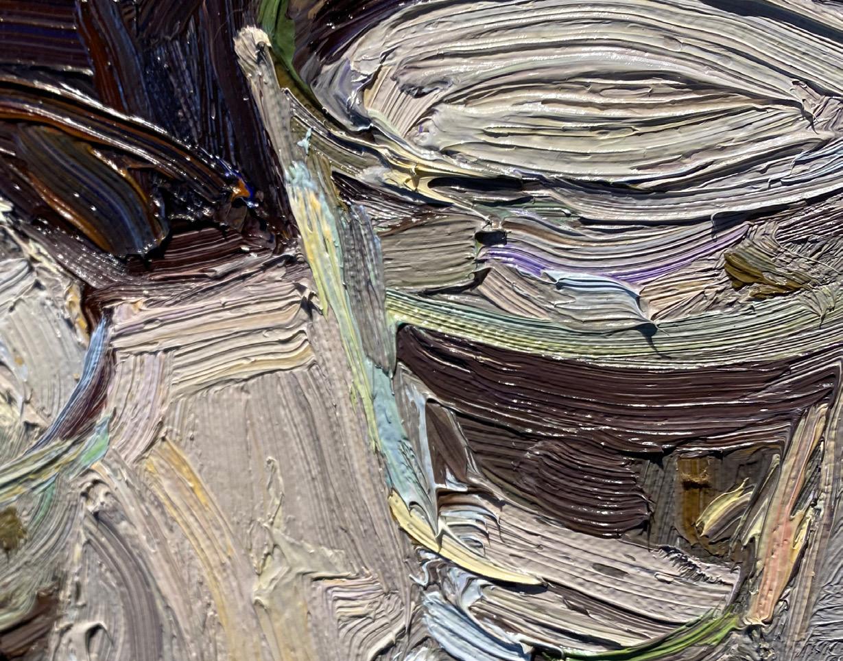 From Denver, Colorado, Nancy Switzer paints still lifes of simple, everyday objects such as milk cartons, water glasses, cans, and more. She is known for her textural, heavy application of paint. An eye for complexity in simple subjects is key to Switzer’s work, saying of cans “A can is a simple shape. It reflects everything around it, takes form and is defined by reflecting what it is not. The can is only visible because of what it reflects. Looking at a can for a time, one begins to see what is-not-there.”