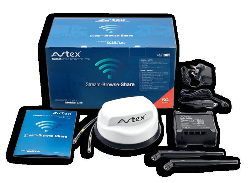 Stream Browse Share with the brand new Avtex AMR985 router and 5G compatible antenna package. The antenna utilises the latest technology to fully support 3G, 4G and 5G, whilst the AMR985 router supports two unlocked SIM cards to maximise coverage and minimise roaming costs. Connect up to 100 devices with download speeds of 150Mbps, 4x ethernet ports for wired connection and also including a simplified customer on screen display to easily toggle between LTE and Wi-Fi when available.