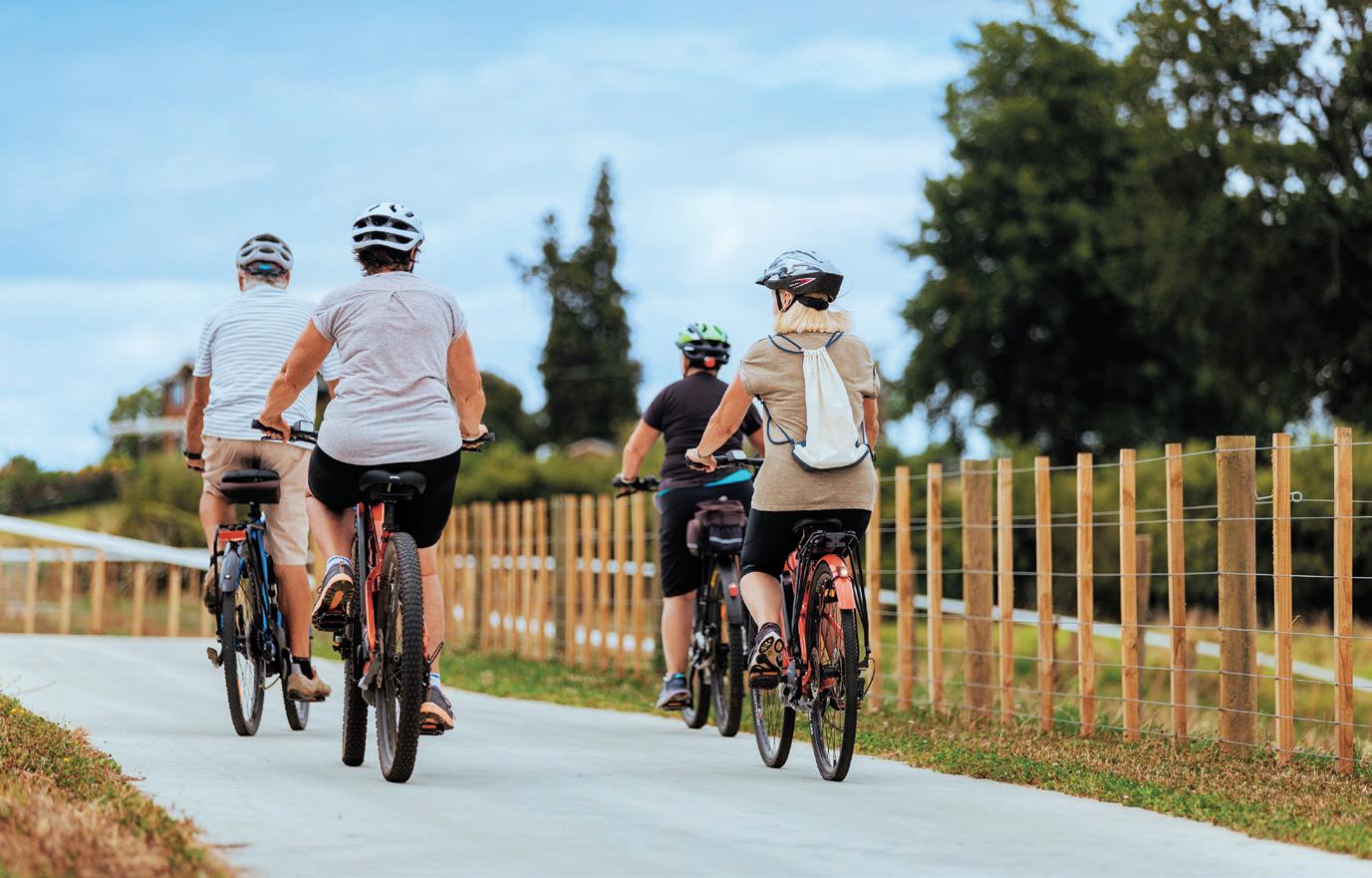 the longest concrete path in the country, winding a total of 65km from Ngaruawahia to Lake Karapiro. ere are plenty of opportunities to pop on and o the trail, with superb café and points of interest along the way. It’s truly a world-class experience, centred around the majestic Waikato River and taking in lakes, rivers, waterfalls, bridges, and elevated boardwalks. Look online for your most convenient access point. Te-awa.org.nz