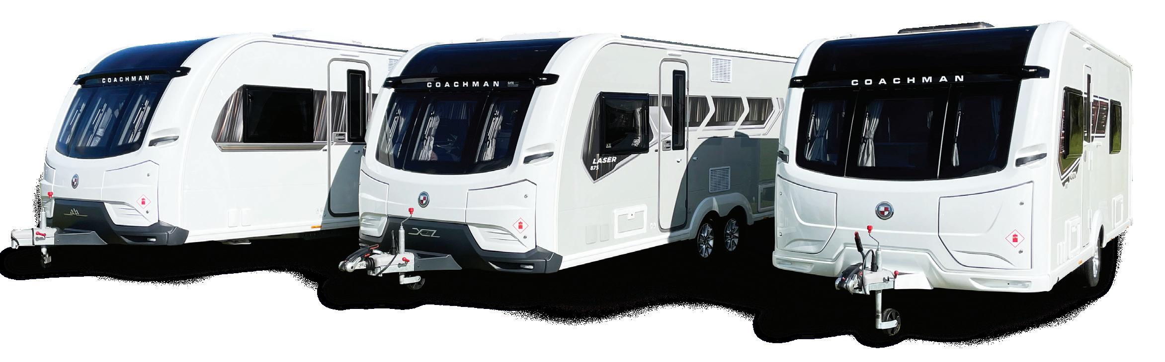 Explore an exclusive selection of our Coachman & Swift caravans at the show, featuring spacious 8 ft wide, island bed, and single bed models.