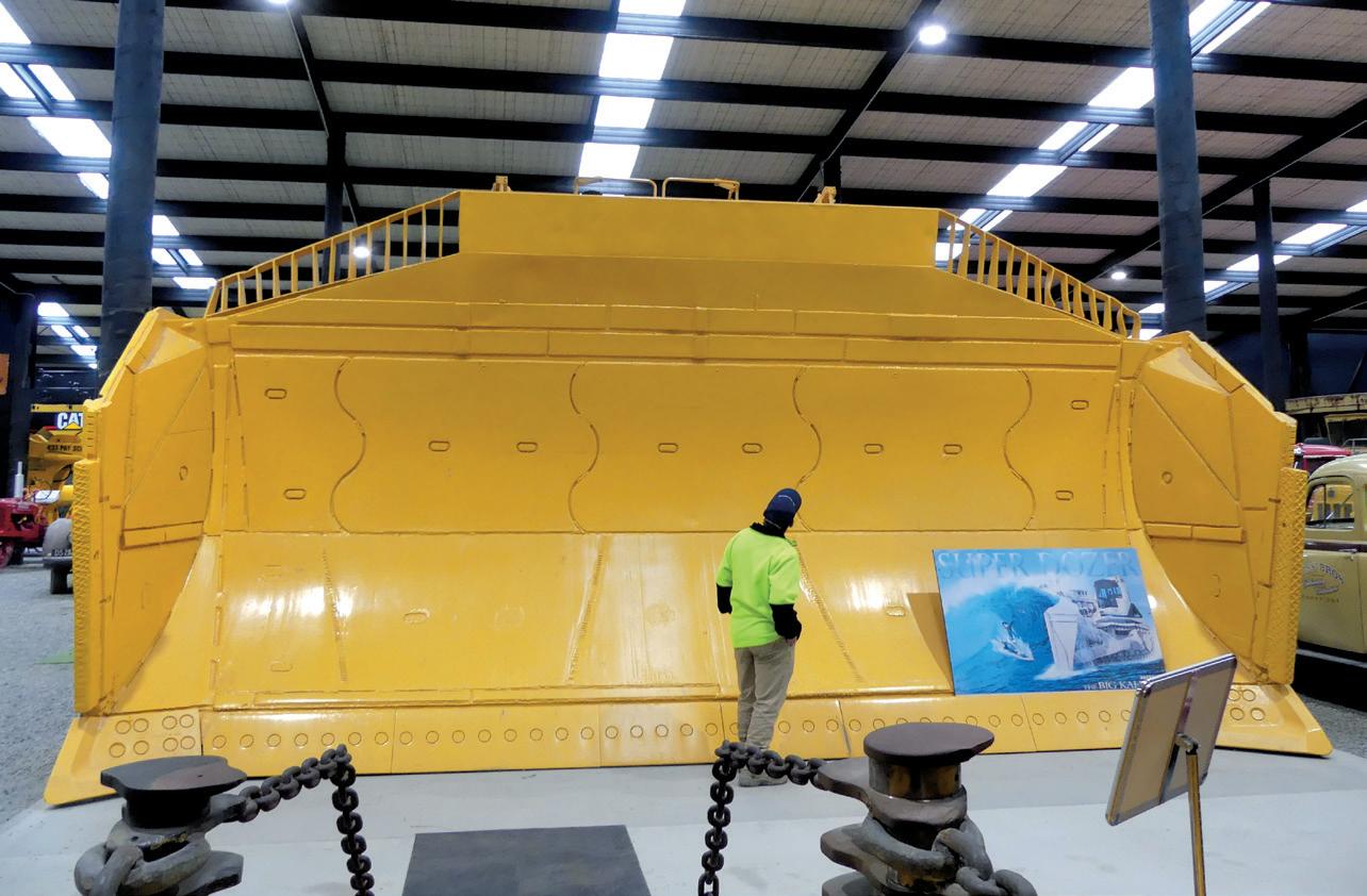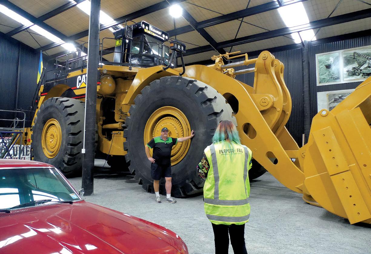 driven loader in the world. The 994 is huge. It’s fitted with a 4641-litre fuel tank (equivalent to 15 to 16 standard bathtubs) and can consume almost a 200-litre drum of fuel per hour. The tyres weigh in at 4.7 tonnes each and stand 3.58 metres in height, with the restorers saying they used 130 litres of CAT Yellow to paint the machine.