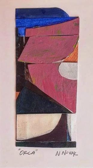 Orca, acrylic & collage on paper, 9.25 x 5.5 in., paper size, pencil signed, titled, & numbered on front, $275/unframed