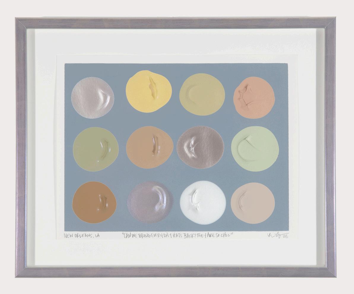 Can We Bring Every Day Hats Back? They Are So Chic!, acrylic on paper, 9 x 12 in., sheet, pencil signed, titled, & dated on front, $650/framed