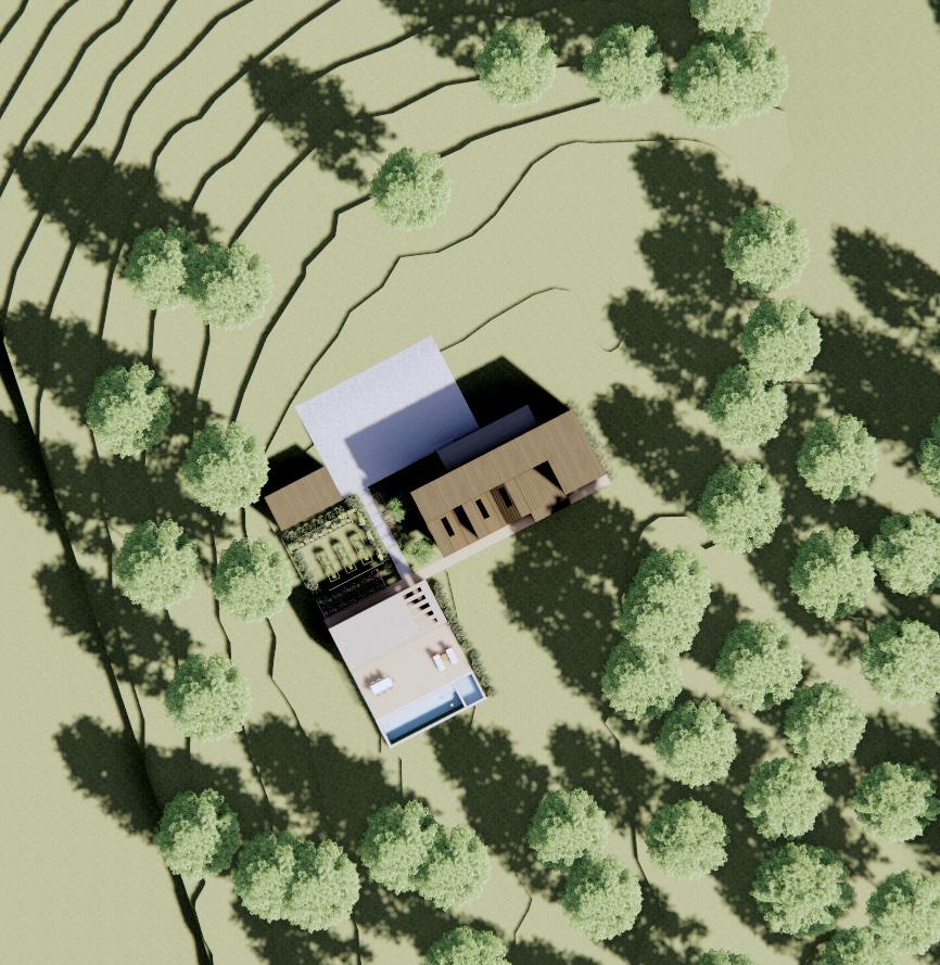 the northern axis of the site, the project embraces the range of natural conditions on the property. The rhythm established through the spatial and structural grid, rather than leading to predictability and redundancy, encourages discovery from the logic of the tectonic structural expression and in the multitude of moments enclosed within its boundaries.