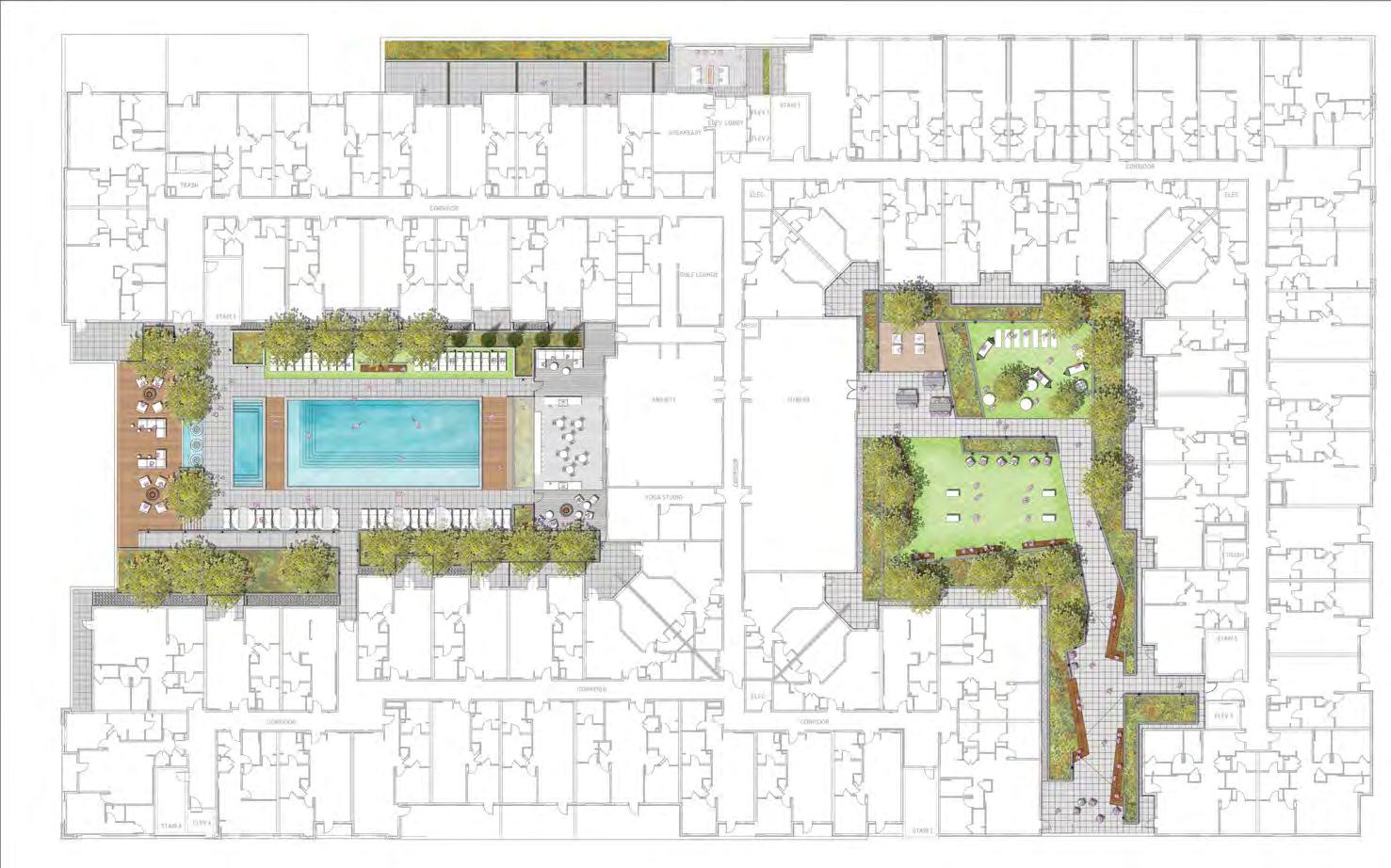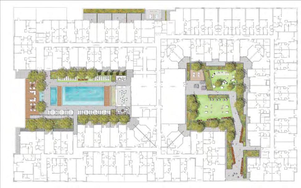 ADDITIONAL AMENITY SPACE & 4 SPAS WERE REQUESTED BY THE CLIENT, AS WELL AS A PATH PROVIDING ACCESS TO THE ROAD NORTH OF THE PROPERTY.