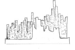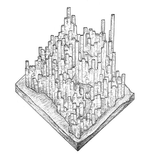 USING PLASTER, PLASTIC STRAWS AND HOT GLUE, A MODEL WAS CREATE TO SYMBOLIZE DIFFERING SCALES OF VERTICALITY.