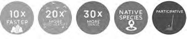 THE PLANTS CHOSEN FOR THE MIYAWAKI FOREST ARE NATIVE AND FAST-GROWING. BY GROWING SO DENSELY, THE FOREST MATURES 10X FASTER AND CREATES 20X MORE BIODIVERSITY. THIS METHOD PROVES EFFECTIVE EVEN ON BROWNFIELD SITES.