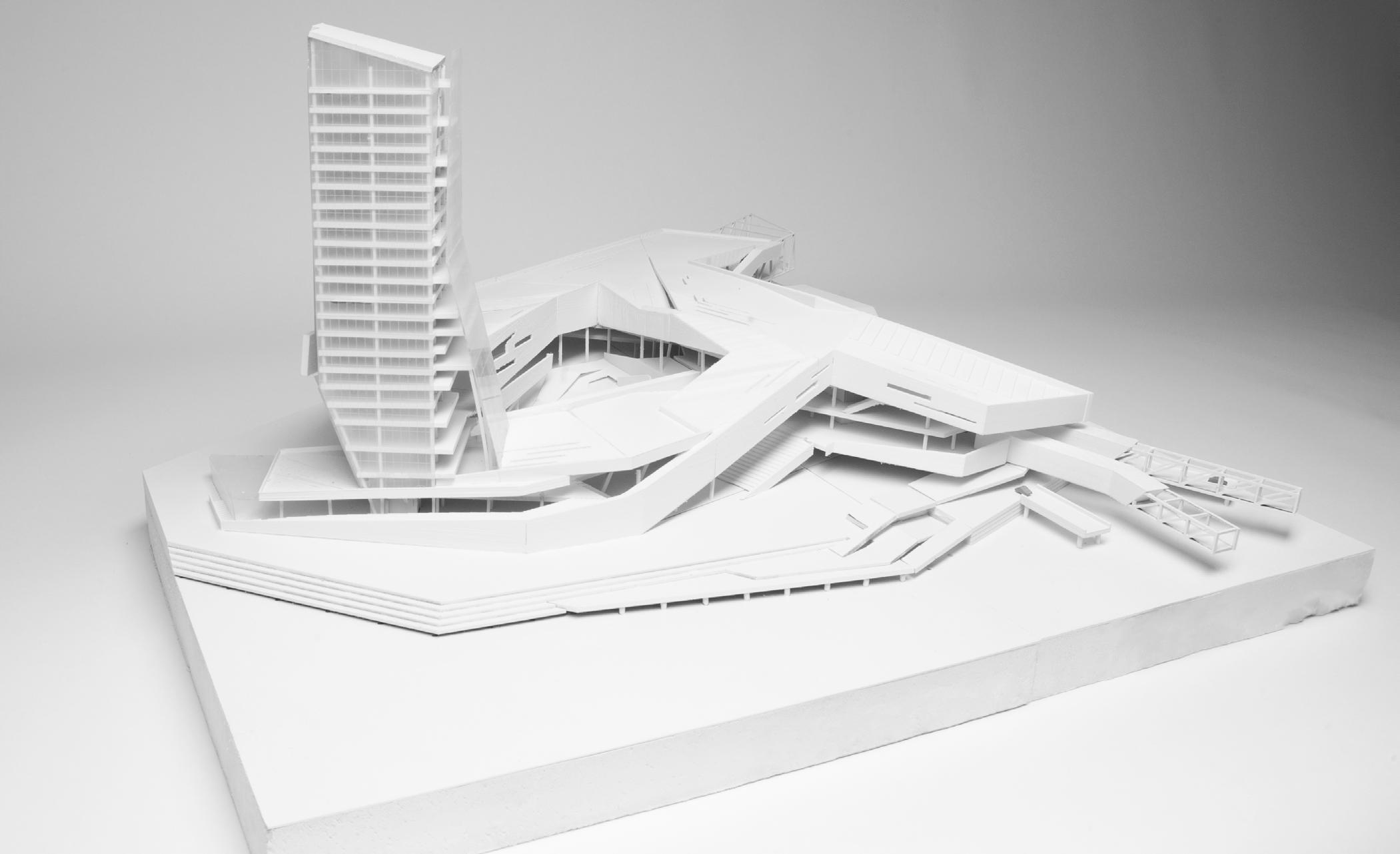 The new Seattle transit hub aims to not only connect the various modes of transit along the waterfront, but also the various users and various landscapes as well. The three arms of the transit center reach out, pointing towards their users destination, and unite in the center in the covered courtyard. The hub creates a unique stopping point along its users journeys that ventures between nature and city, and attempts to unite those two.
