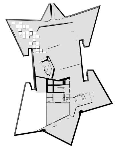 sculpture garden typical unit 14’x16’ main entry units grid main entry on site for students. a large, double height canteen space that connects the site to the other student amenities as well as to the original palazzina.