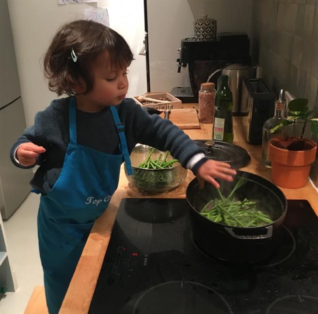 Mélanger avec la cuillère en bois bien délicatement pour ne pas faire retomber les blancs.