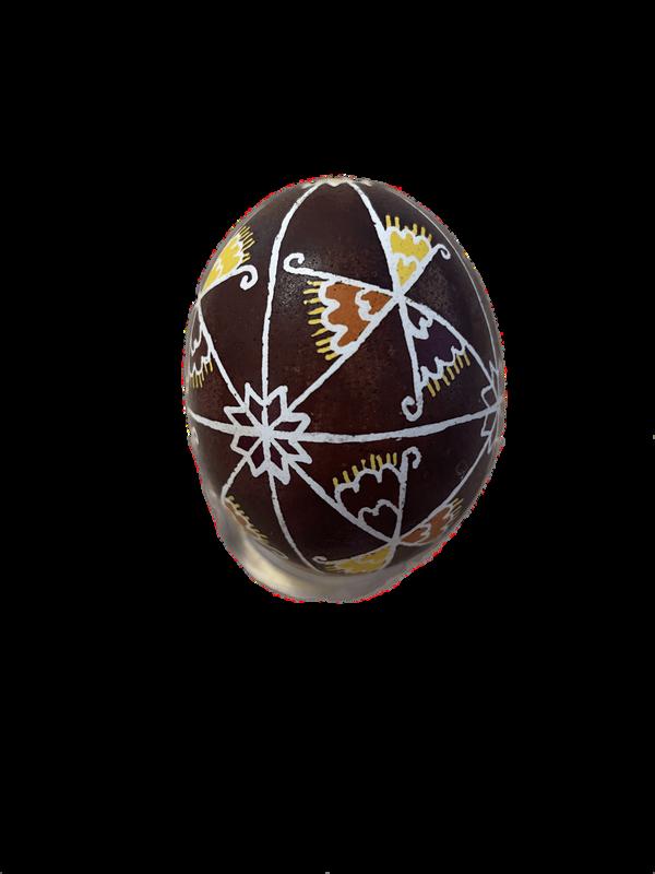 If you are familiar with Ukrainian folk art, it is likely that you know of a special method of egg decorating using found all across Central and Eastern Europe, but is the most common in Ukraine. The name of these decorated , comes from the verb “to write,” because designs are written on the egg with wax, rather than painted is similar to the process of making batik fabric. Imagine a pristine white eggshell. , or wax-depositing stylus, and writes a design on the egg. Whichever parts are covered in wax will stay white when the eggshell is dipped in its first color (let’s say it’s yellow). Then, the artist will write the design that they want to be yellow, and then dip the egg in a second color (orange). This process will be repeated all the way from the lightest colors to the darkest colors, and the design will be complete. The final step is to melt all the wax off and reveal the design underneath!