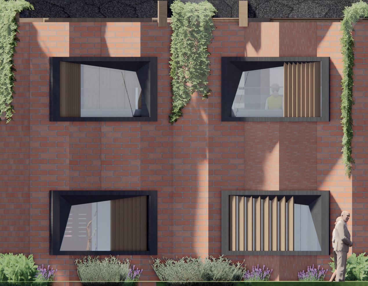 Additionally, the window frame would be prefabricated into a certain shape, which would provide an enhanced light projection on the building elevation, supporting dementia suffering from recognizing the surrounding environment.