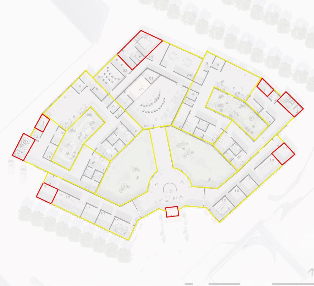This project focuses on how to create a safe and comfortable environment for dementia patients, including how to keep the ward warm and maintain a good ventilation environment (see section 3.1). The building would need to include special fire evacuation to protect the vulnerable group (see section 3.3) and also include serious architectural form language to assist patients’ daily routine (see section 4).