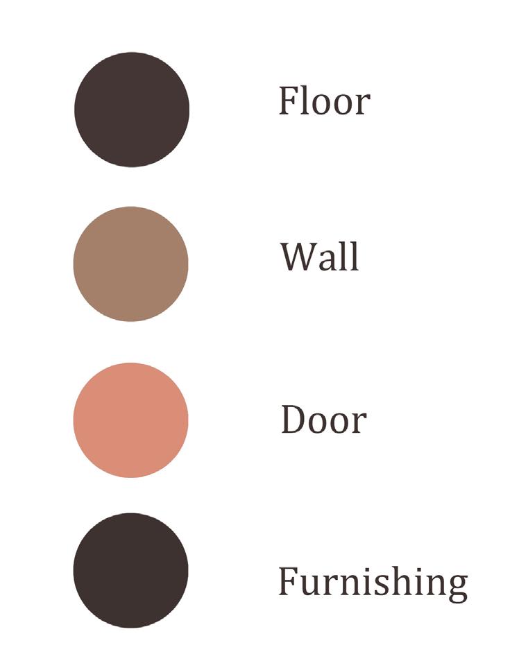 The key interior elements of the wards such as walls, floor panels, and furnishers are kept at 30 percent light reflection value to assist dementia patients to orienting and recognising objects. To ensure this point, normal people should examine the interior render photos by turning photos into black and white mode.