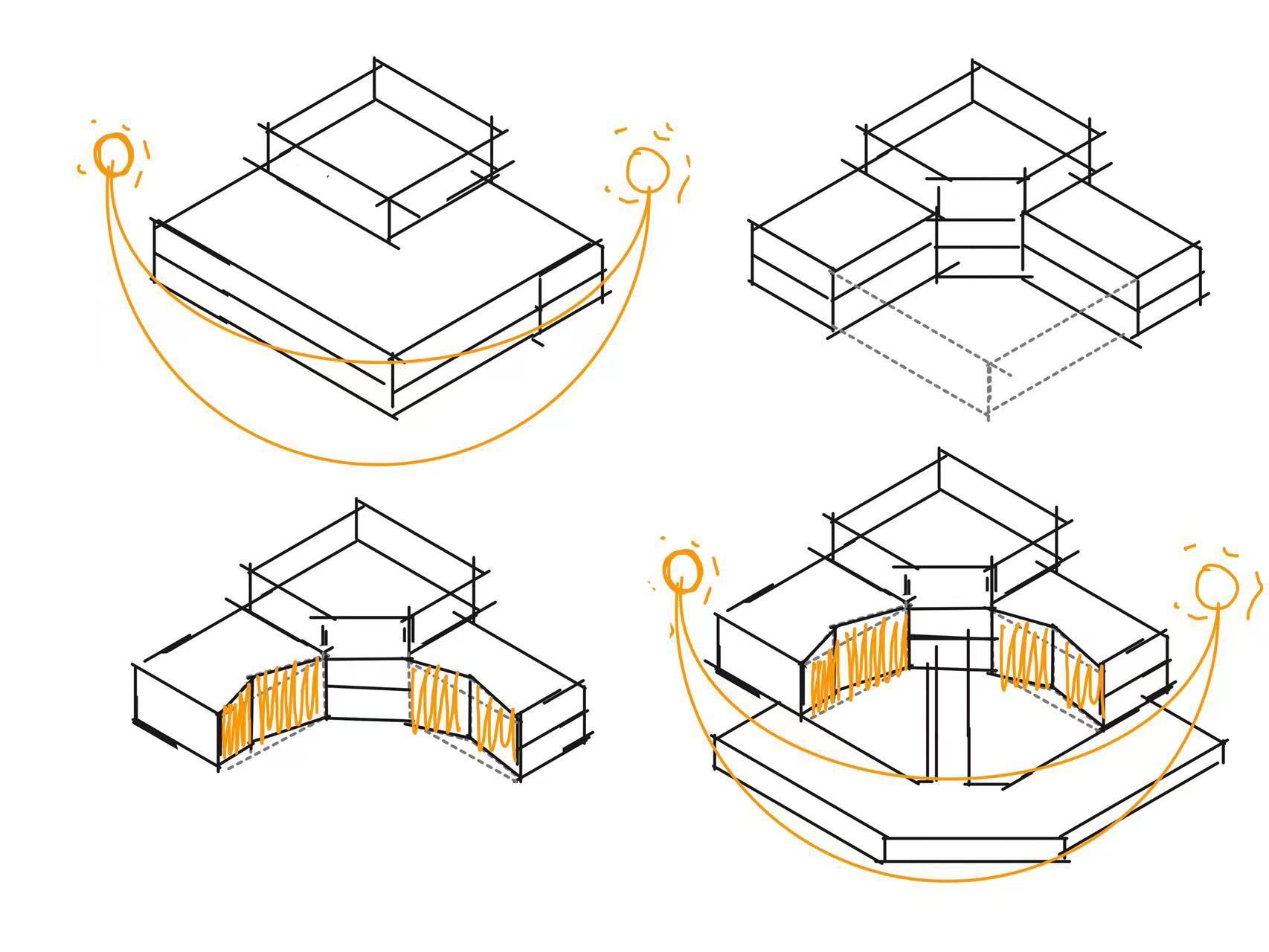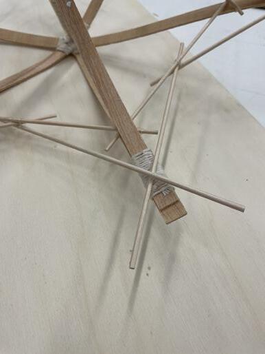 This model provides me a chance to explore the timber bending technique. Surprisingly, the bent timber could still provide enough load-bearing ability.