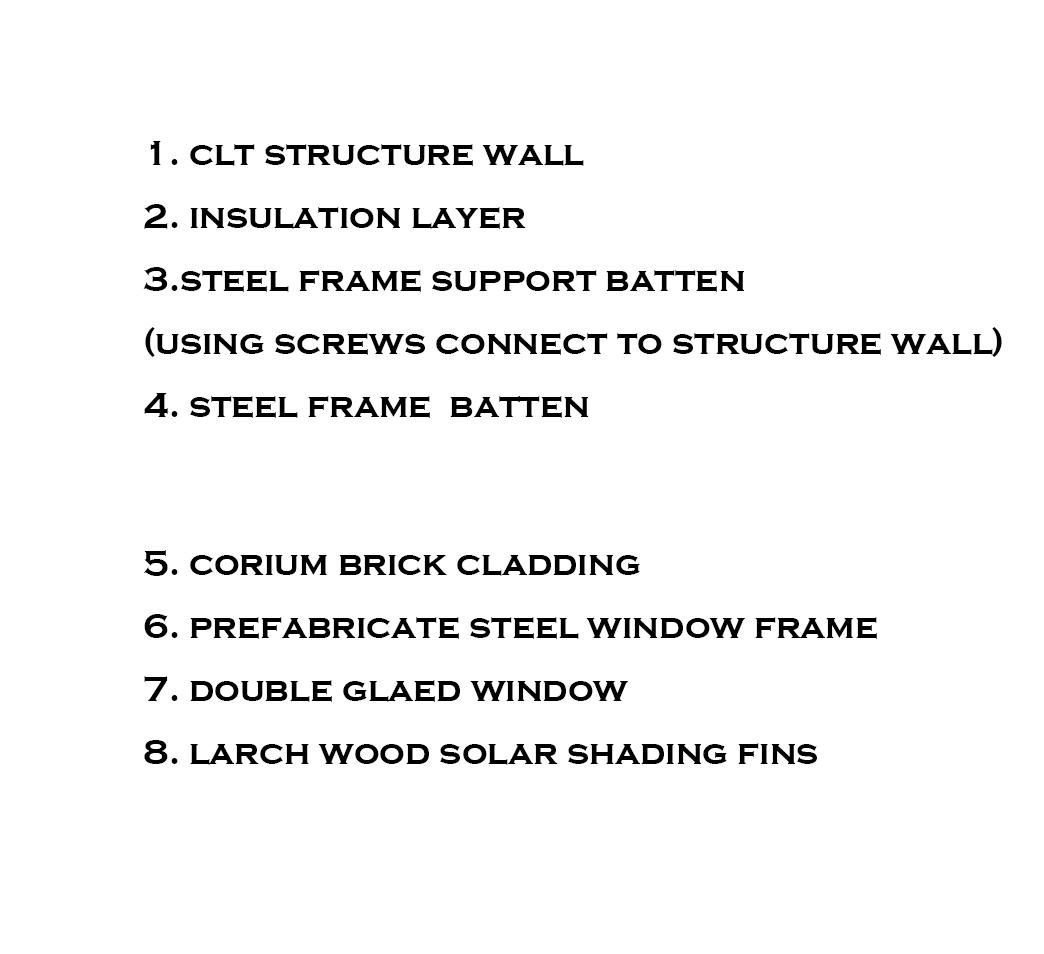 The reason for chosen form of this facade is the light performance of this elevation. It could generate different shadow shapes from different sun angles. This would help dementia patients to recognizing time. With the help of corium cladding, the facade could have an opportunity to be a part of therapy assistance. It could generate a building surface color that has a higher purity that could help people living with dementia recognize the object on it. The color of the window frame would be painted black to create a sharp color contrast to support and enhance dementia suffers’ visual interpretation.