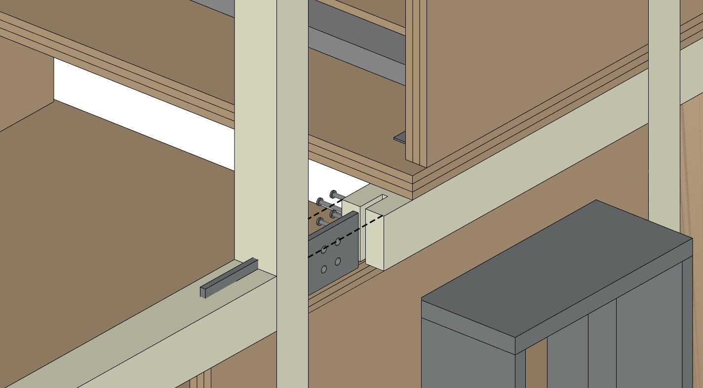 As for the interior CLT floor and wall junction, will be connected using a series of screws. This ensures the CLT stays fixed in place.