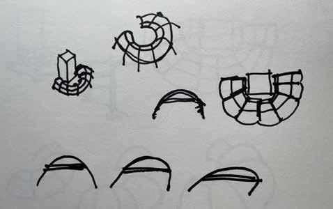 The original form concept is developed from the sculpture task. The form of bird nest become the architecture language that is fit in the site (see the sketches). The idea of imitation the bird nest iterated into the fan shaped structure. I believe I could use a new structure to intervene the existing site, to encourage people use this abounded site.