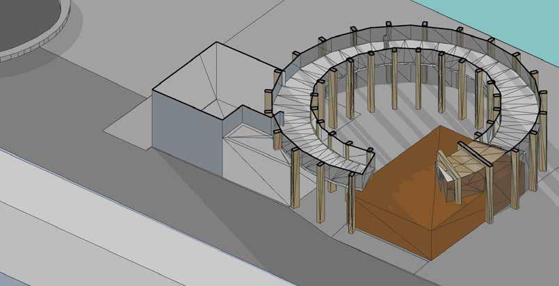 At this point I choose the material of the semi-circle structure is mainly CLT. To provide a rather warm and welcoming atmosphere around the site. At the same time, the timber structure could offer swallow a better nesting condition.