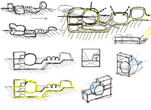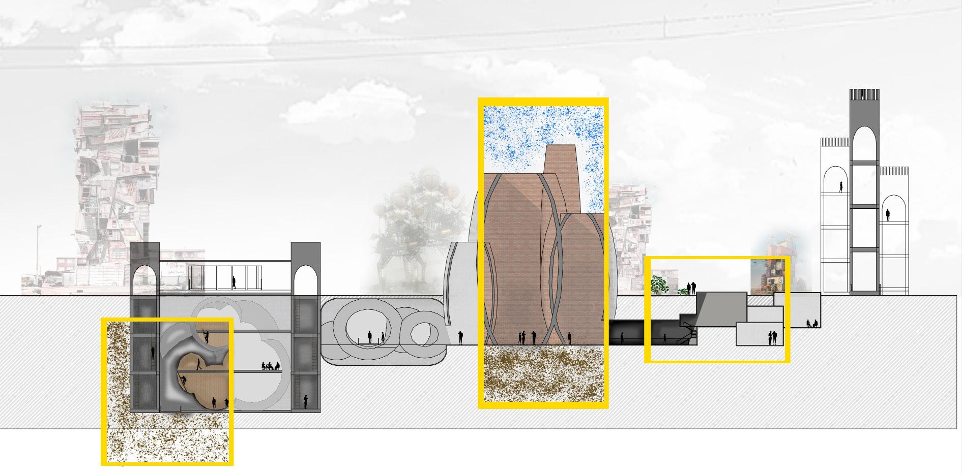 The Introspection jorney is a group building that located at a cracks which representing a possible urban fabric in the future. These group building require visitors to choose the path individually to experience the different life period. The building is half-buried into ground, which creates a vertical spatial experience emphasizes a life experience of searching and introspecting.