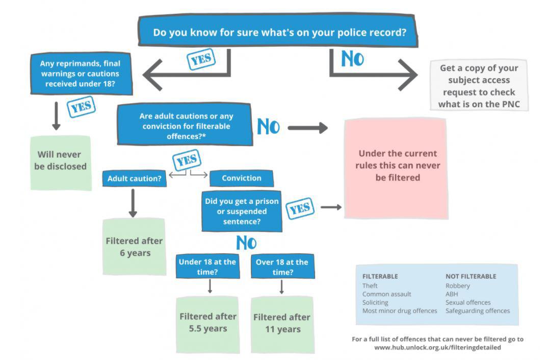 Challenge, Wellbeing, Teamwork DBS checks* - Filtering flowchart