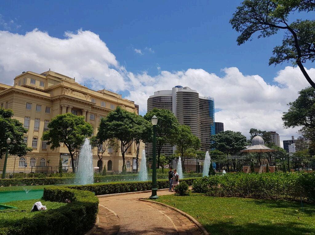 Esta foto da Praça Milton Campos, no bairro Funcionários em Belo Horizonte, revela sinais de abandono em sua paisagem, apesar de sua localização privilegiada próxima ao centro da cidade.