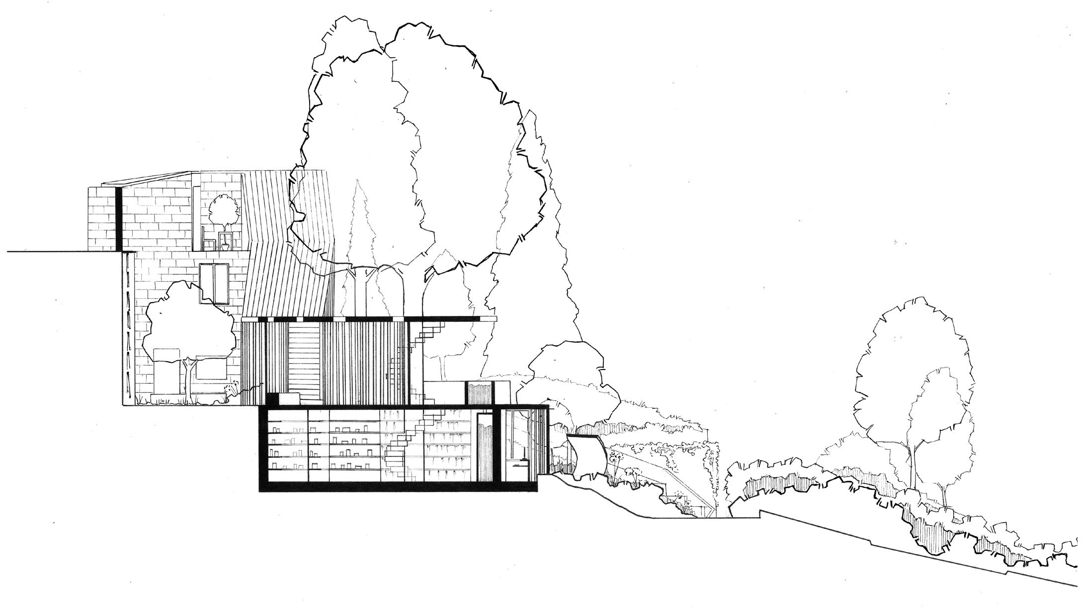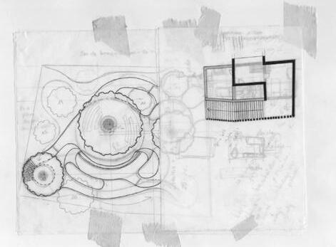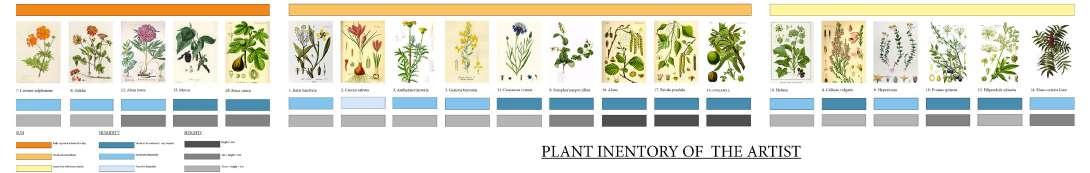 This site located down hill from the street acts as a transition space between the city and the park underneath with a staircase progressively leading you there. Accoarding to that, my goal with this building was not only to provide a space to live and to work for the artist but also reinforce this transition with the park by creating a new « path » for it’s users to dicover the practice of the artist by going down. Knowing that I had to design a private and functional componant for the artsit but also an entertaining and (offering another experience) public path, I thought as the garden of the artist to be the link between the 2 and the already existing and unhabited house located on the site to be refurbished to be the house of the artist. This allowed me to make good profit of the entire plot for the garden but also to keep a trace of history by preserving and giving a new use to the already existing building. With my main focus on the garden, I started researching the plants that the artist would need to dye the facbric. Their characteristcs regarding the amount of sun and water they need but also their size in plan and their height allowed me to place them judiciously on site. I knew how many of each spiece were gonna be in the garden and I also knew that for example that small plants that don’t need a lot of sun should be placed under the big trees. The 3 biggest trees I had helped me frame the path and thus design this organic floor plan. (refer to croquis).